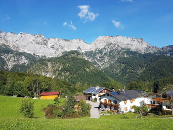 Wir wohnen in einer schönen Pension direkt am Fuße des Untersberges auf der österreichischen Seite, wo wir